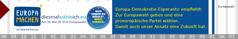 Am 10.04.2009 hat der Bundeswahlausschuss in öffentlicher Sitzung 31 Parteien und sonstige politische Vereinigungen zur Europawahl am 7. Juni 2009 zugelassen. Dazu gehört Europa-Demokratie-Esperanto.