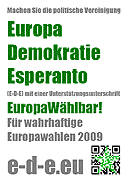 Vom Bundeswahlleiter wurde am 01.04.2009 bekannt gegeben, welche politischen Vereinigungen ihre Wahlvorschläge eingereicht haben. Auf Platz 22 steht Europa-Demokratie-Esperanto. Nach einer ersten Sichtung ist das eine von nur zwei Europa-Themen-Vereinigungen, also gute Voraussetzungen für eine Europawahl. Unter den beiden (wenn nicht sogar allen Bewerbern) schlägt nur EDE eine auf gleichberechtigte Kommunikation und Identität orientierte praktikable Politik vor.