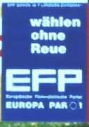 Europäischen Föderalistischen Partei EFP. Doch immer, wenn Esperanto nur ein Unterthema ist, wird es verdrängt! Außerdem haben es Proeuropäer zu allen Zeiten schwerer als gedacht, zu Wort zu kommen. „1979 übernahm Lutz Roemheld den Vorsitz und das Generalsekretariat der FI. Unter Roemheld setzte sich die EFP unter anderem im Wahlkampf für die Europawahl 1984 für Esperanto als europäische Zweitsprache ein.“ So steht es bei Wikipedia. Lutz Roemheld bat Esperantisten, die EFP zu unterstützen. In seinem Werbefilm zur Europawahl 1984 empfahl die EFP die Zweitsprache Esperanto als Sprache für die Europäer. Diesen Einsatz sahen die Esperantisten positiv, der Deutsche Esperantobund konnte neue Mitglieder aufnehmen.