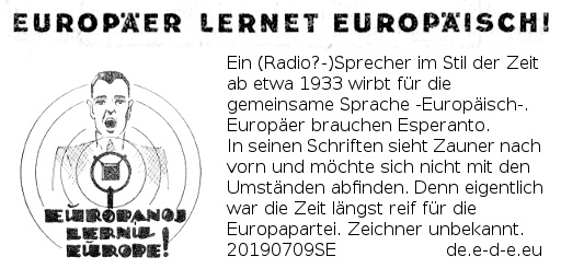 Ludwig L. Zamenhof veröffentlichte 1887 die inzwischen längst benötigte Internationale Sprache Esperanto. Als weltweite Sprache ist sie auch für ein geeintes Europa sehr gut geeignet und es liegt nahe, sie hier angemessen zu nutzen. Das war auch für Zamenhof eine klare Sache.